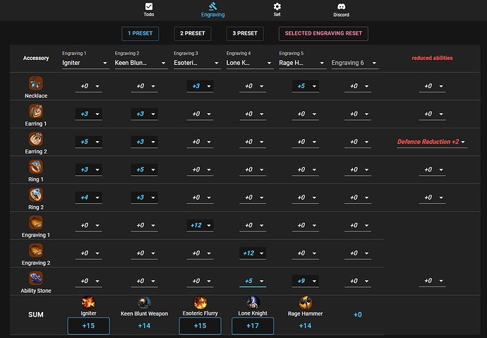 Important: Keep in mind that an Engraving Planner is just a tool. It’s developed to help players pre-check the damage, strength, and other parameters. The results might be different from the original. The original 100% performance is tested by applying the engravings and playing the game.